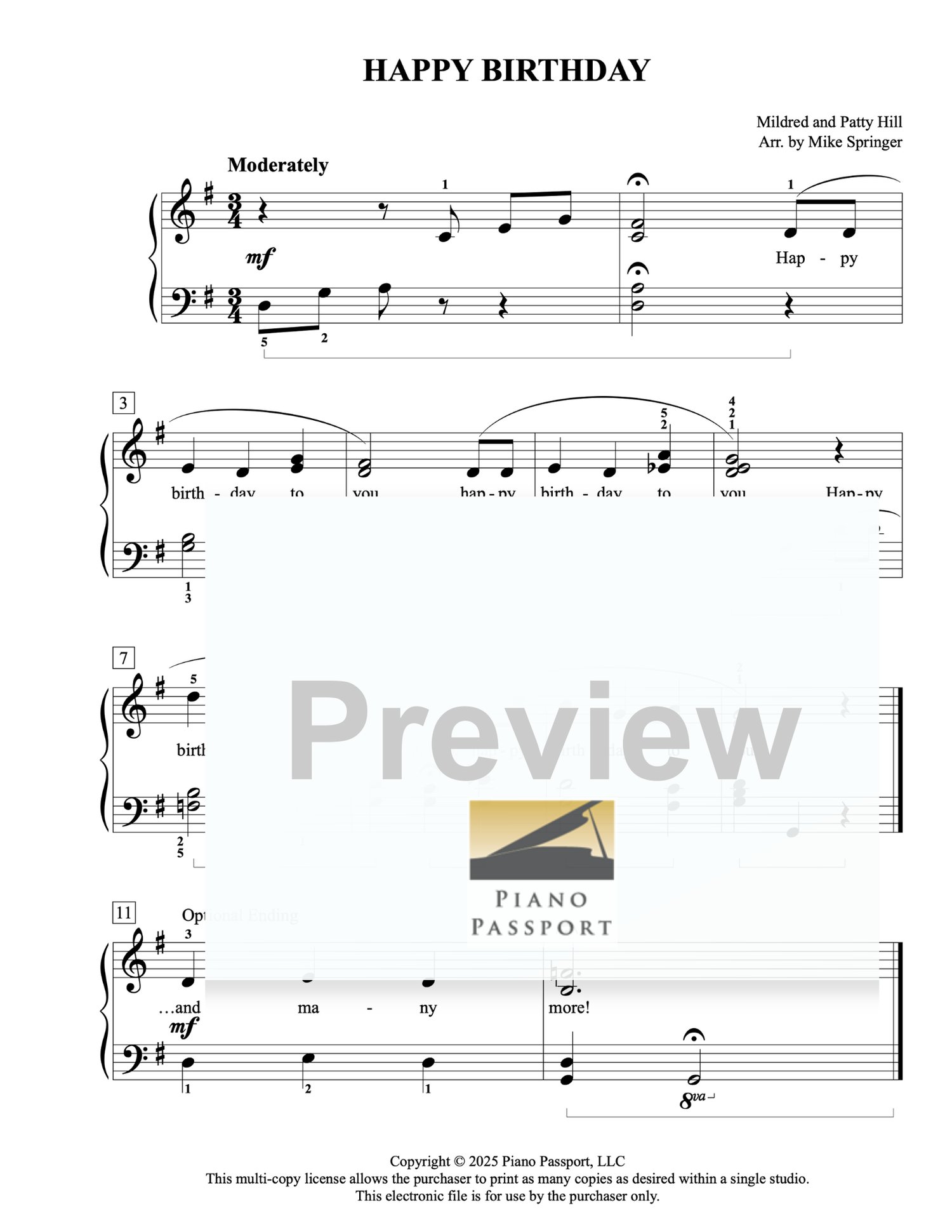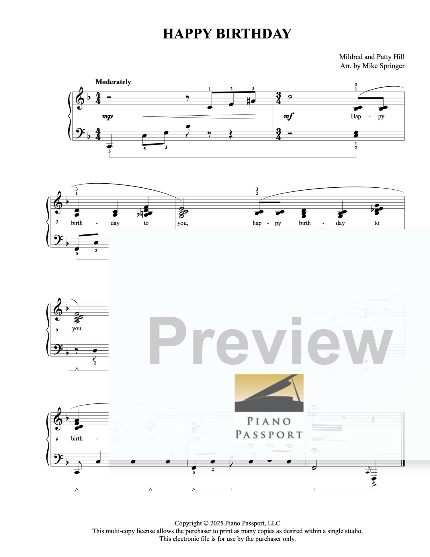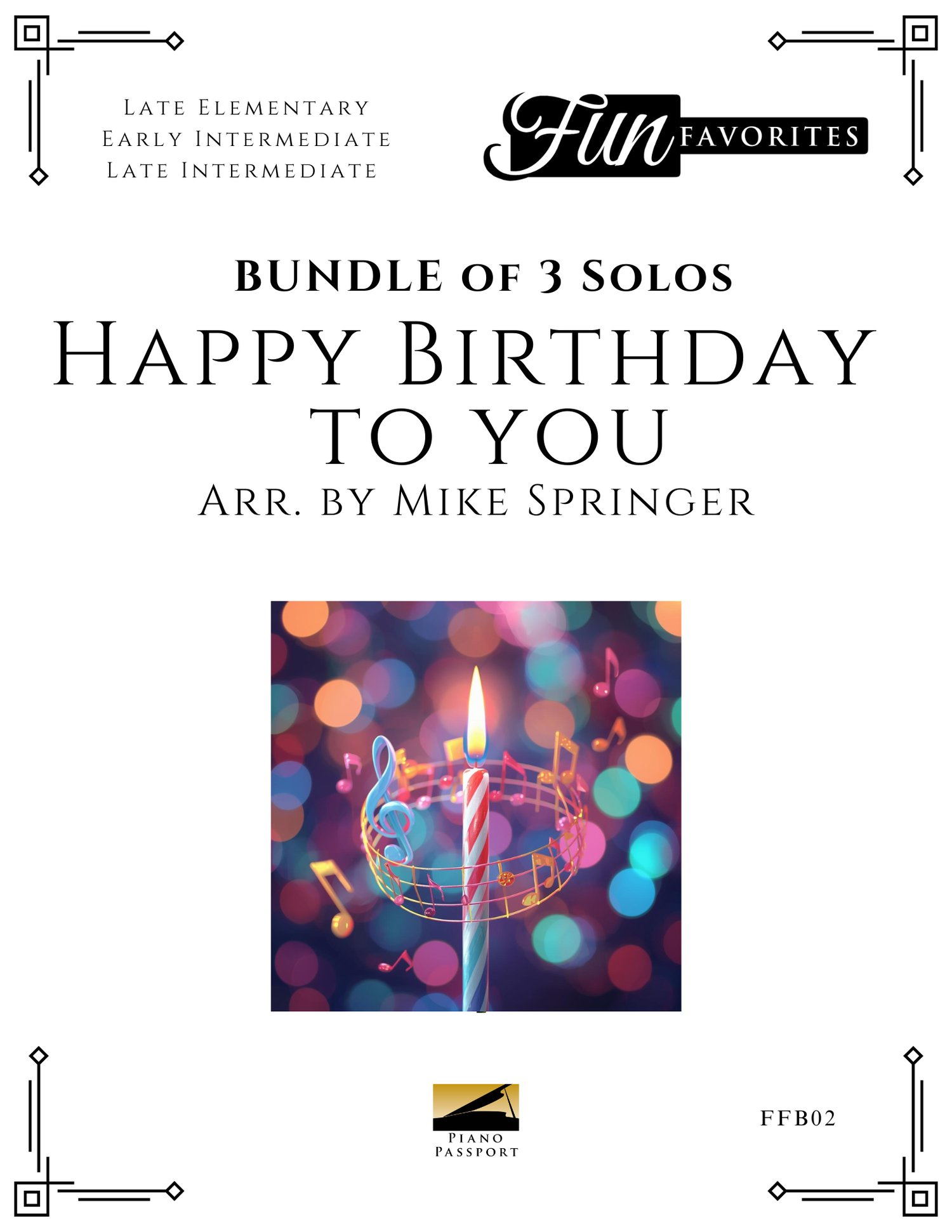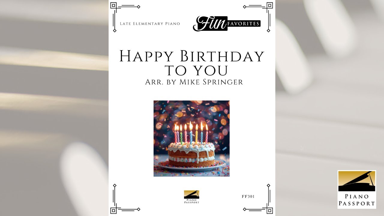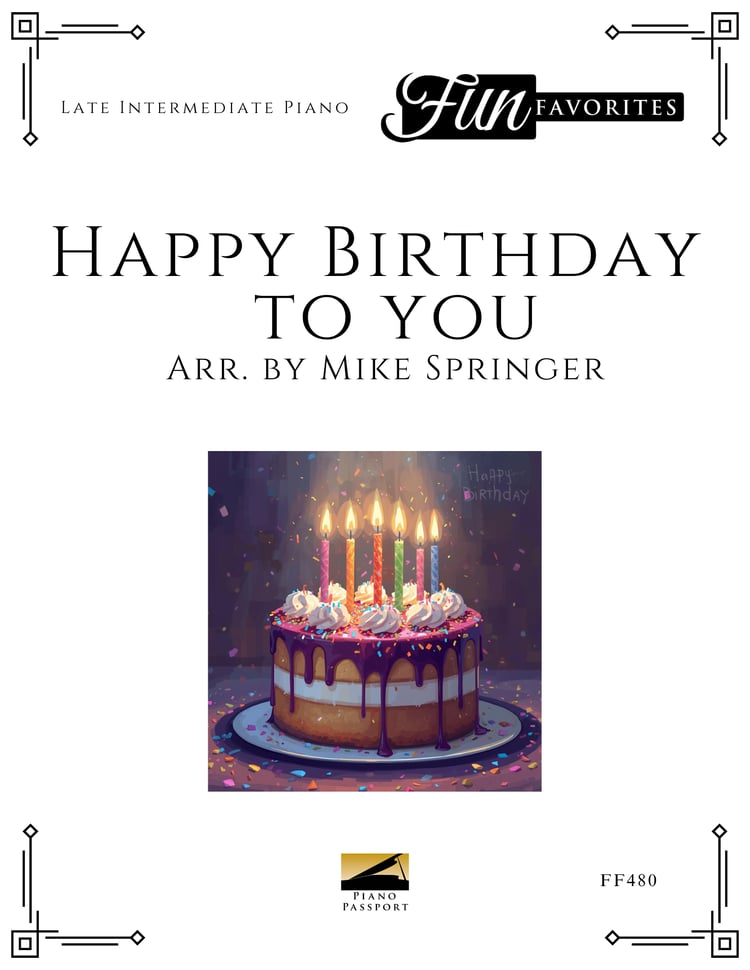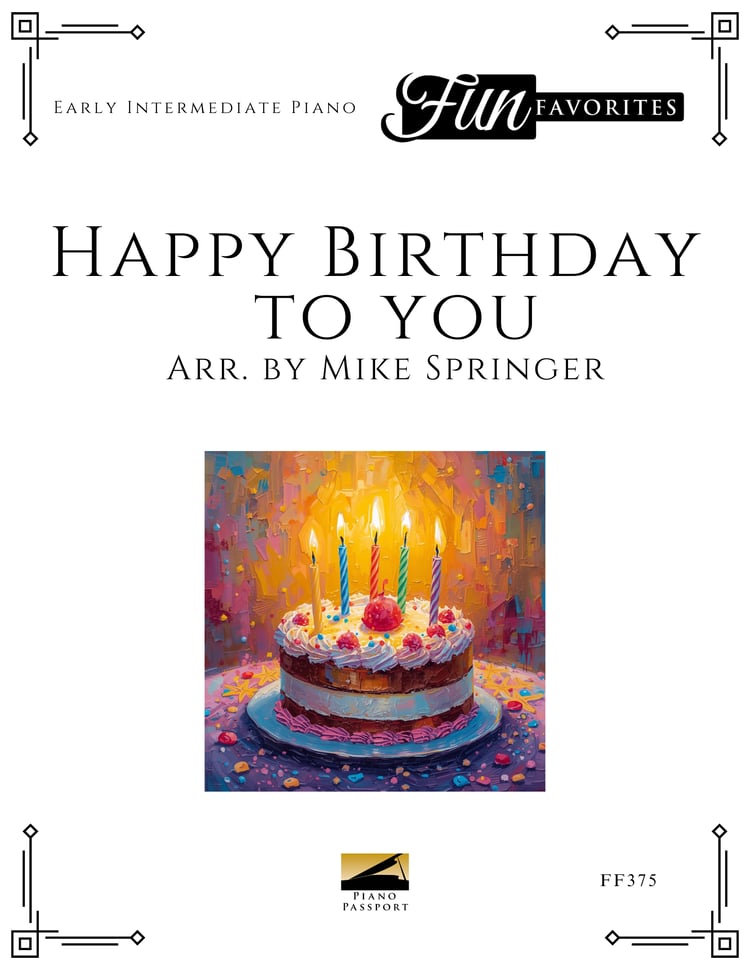 Receive all 3 versions of “Happy Birthday to You,” the world’s most celebrated birthday tune—skillfully arranged by Mike Springer. Keep a copy ready for enthusiastic students at every level! Perfect for recitals, studio celebrations, or surprise performances, these arrangements add charm, fun, and festivity to any musical occasion.