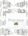- A printable PDF file consisting of three 8.5x11 inch coloring pages for three different folded books, approx. 4 x 3 inches after folding; one page of folding instructions, plus one folding illustration page. A "how-to-fold" video also accompanies your purchase at the download area.